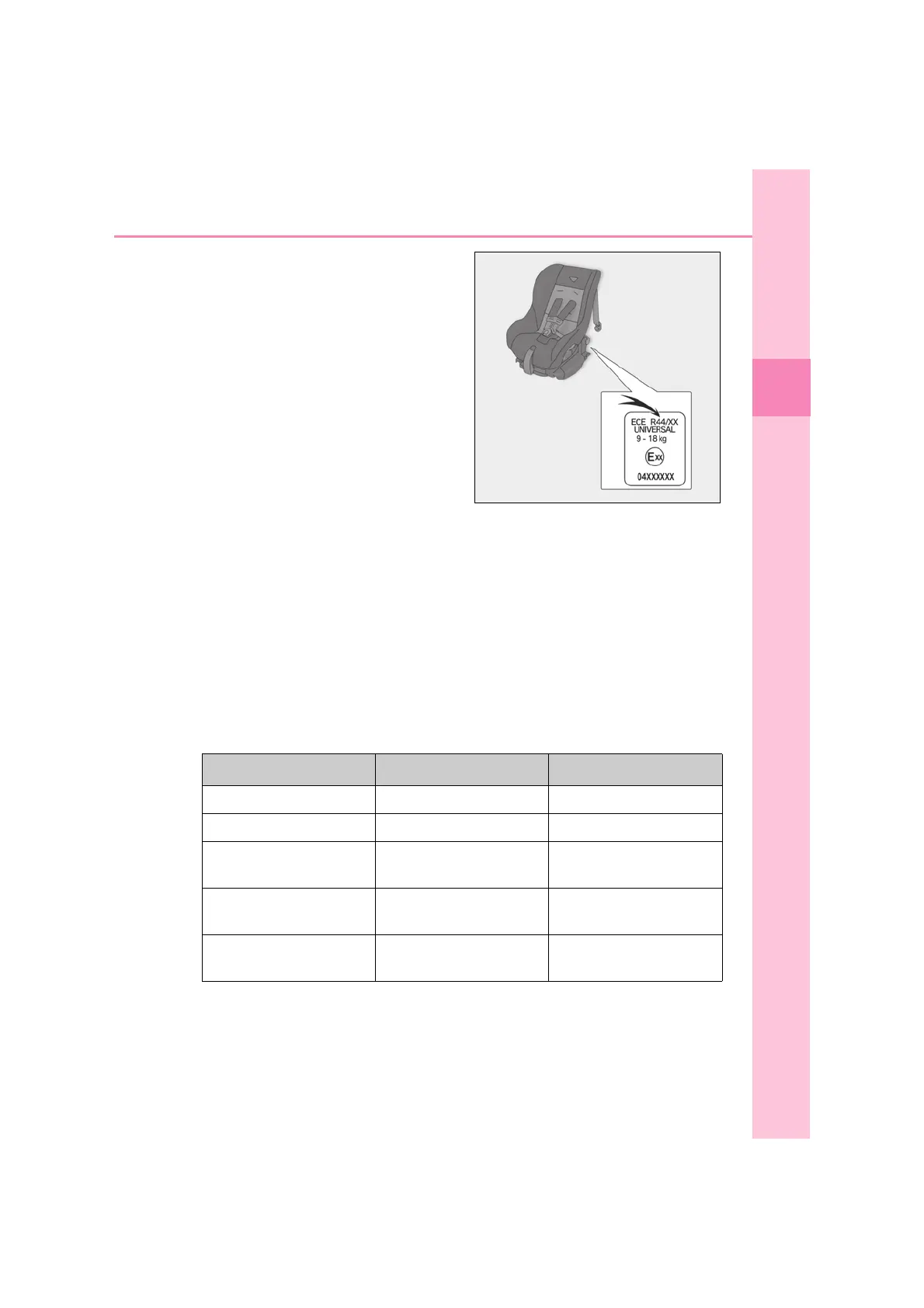 The child restraint system which conforms to the standard of ECE R44 is catego-