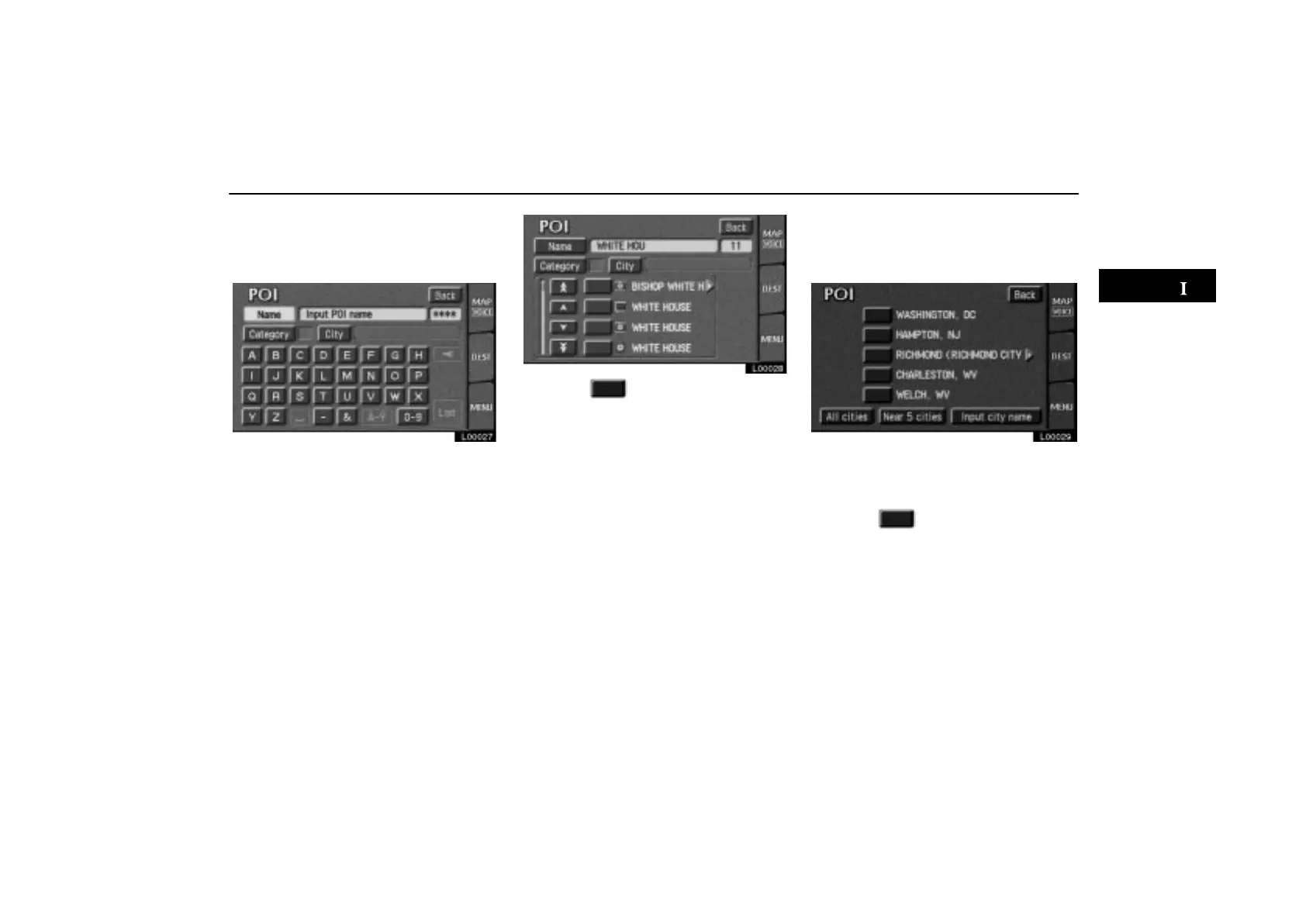 The “POI” screen appears, and then you can