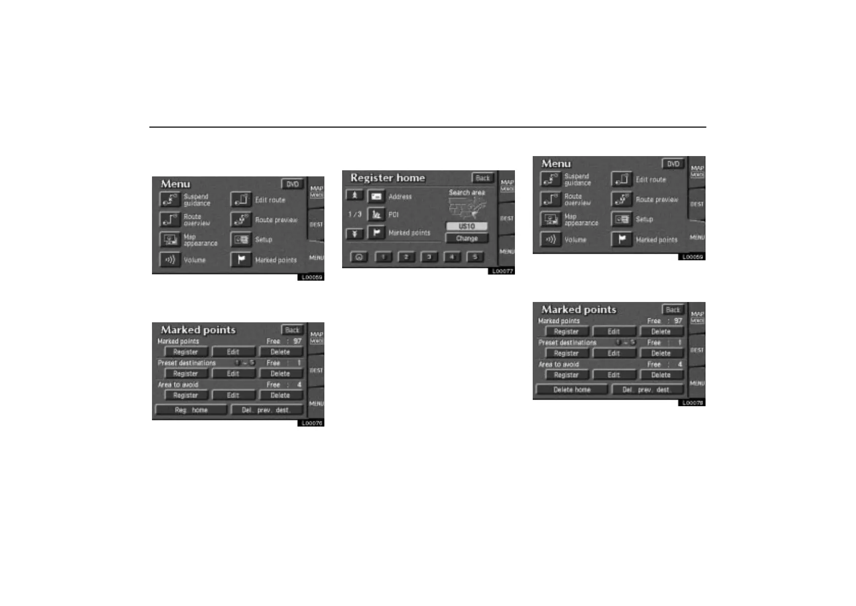 POI, marked points, previous destina-