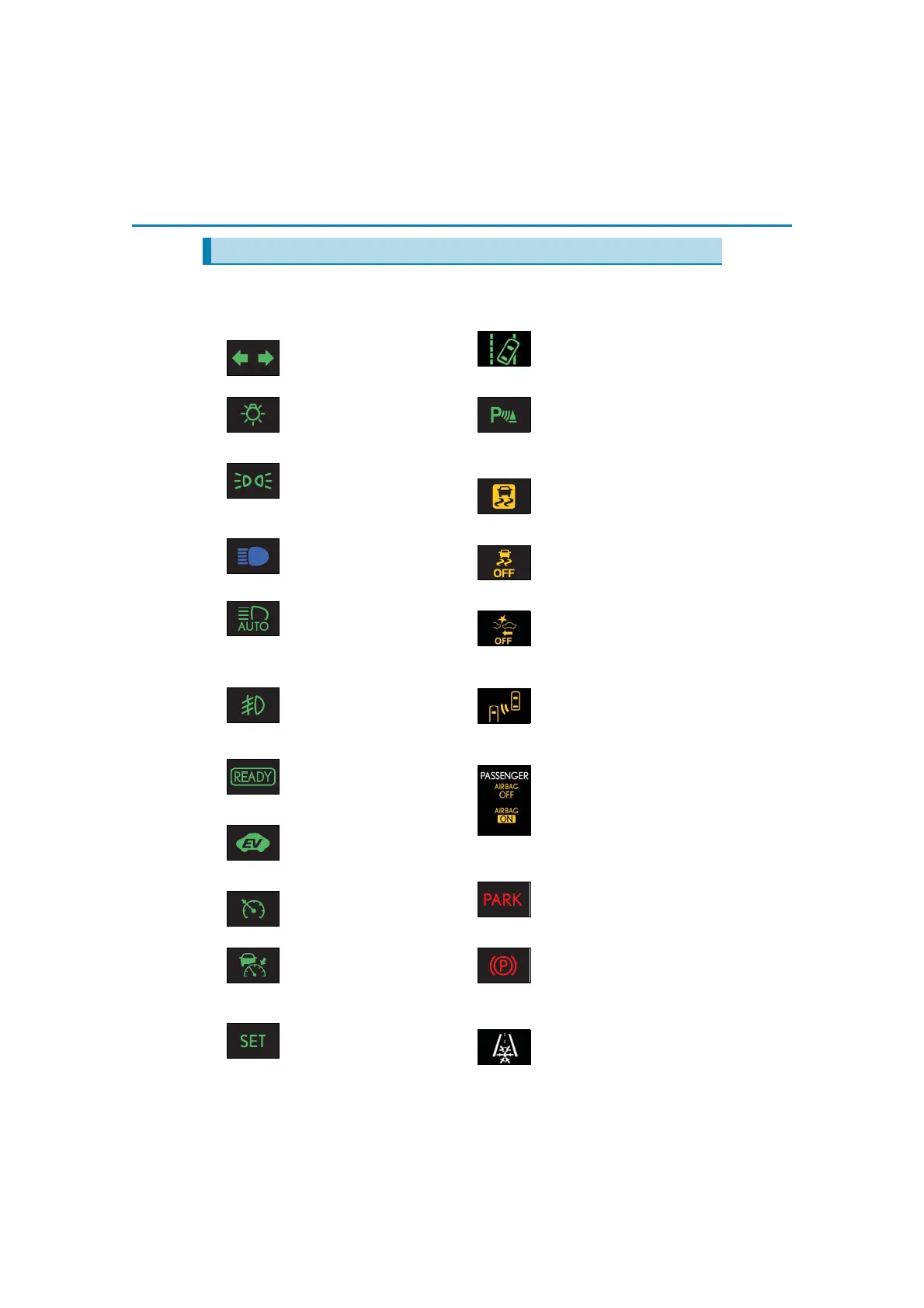 The indicators inform the driver of the operating state of the vehicle’s various sys-