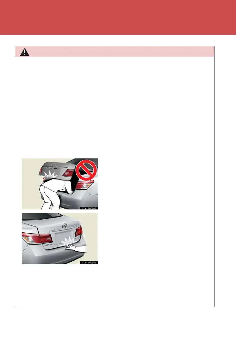 ● Do not attach any accessories other than genuine Lexus parts to the trunk lid.