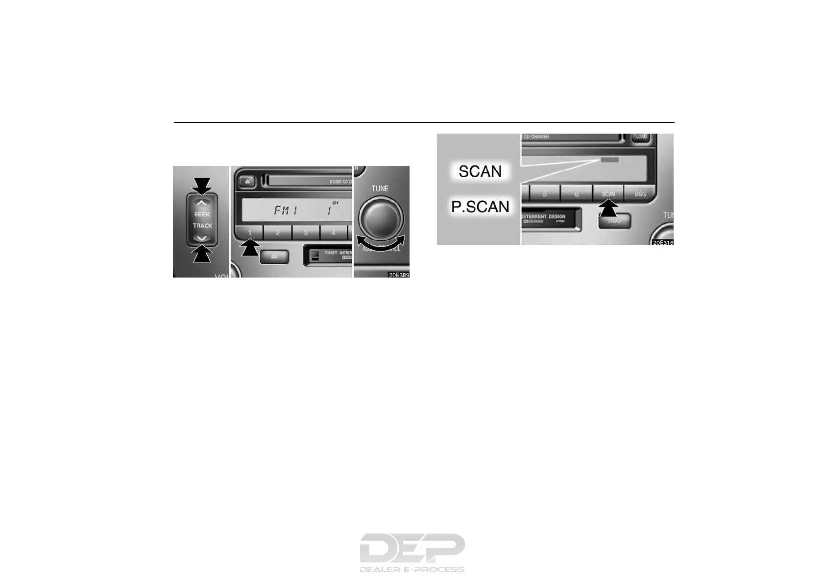 Seek tuning: Push the “SEEK” button. The radio will begin