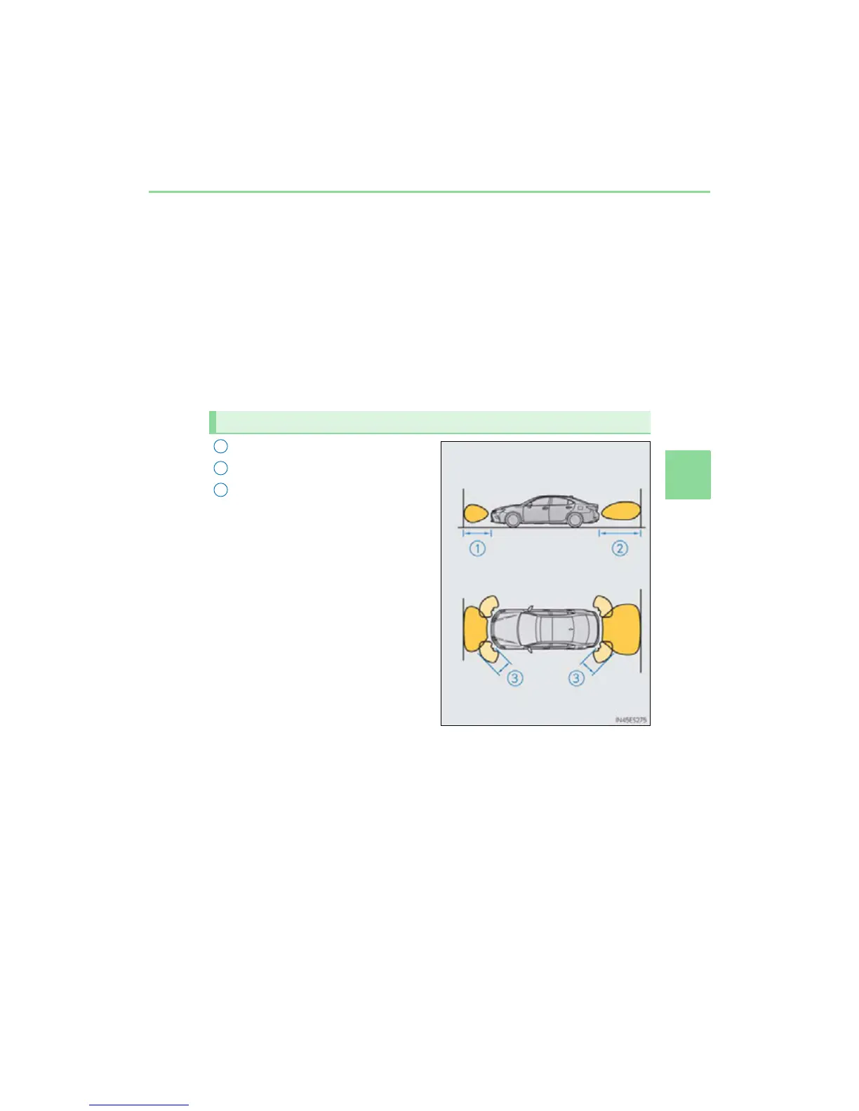 • Front center sensors: Approximately 1.0 ft. (30 cm)