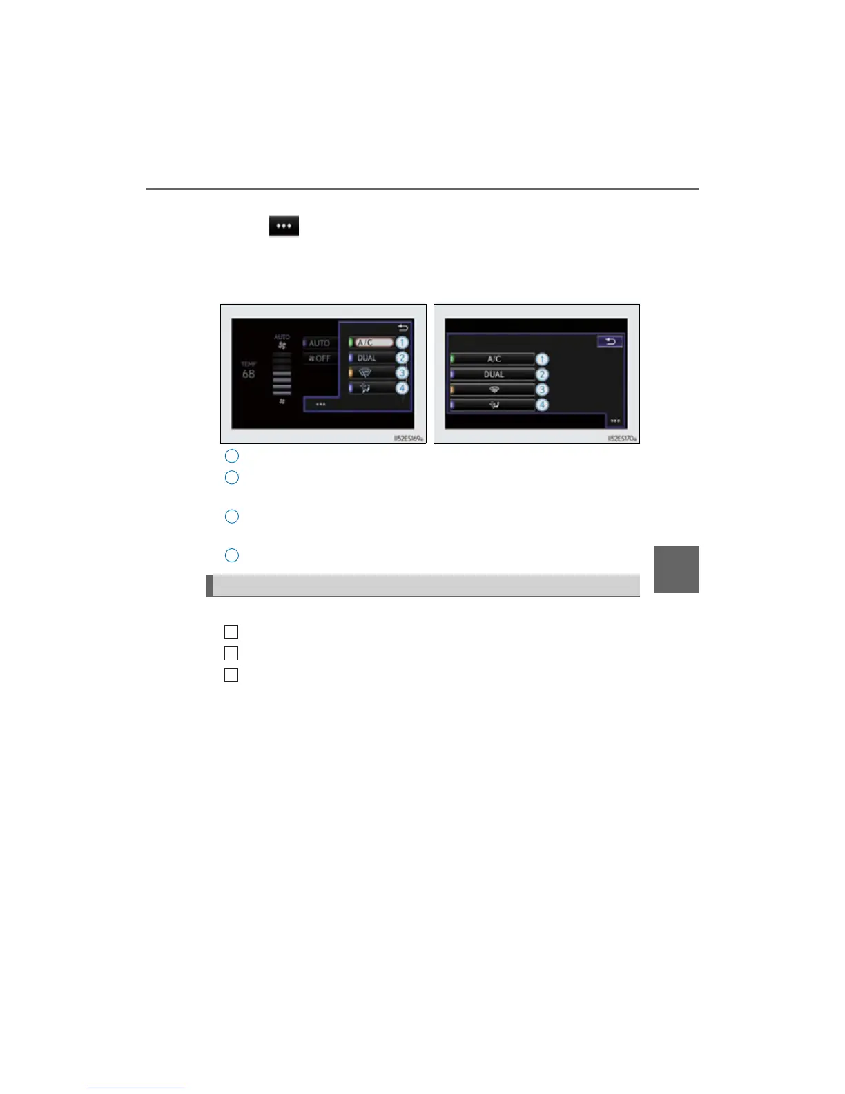 Select on the climate screen to display the option control screen. The