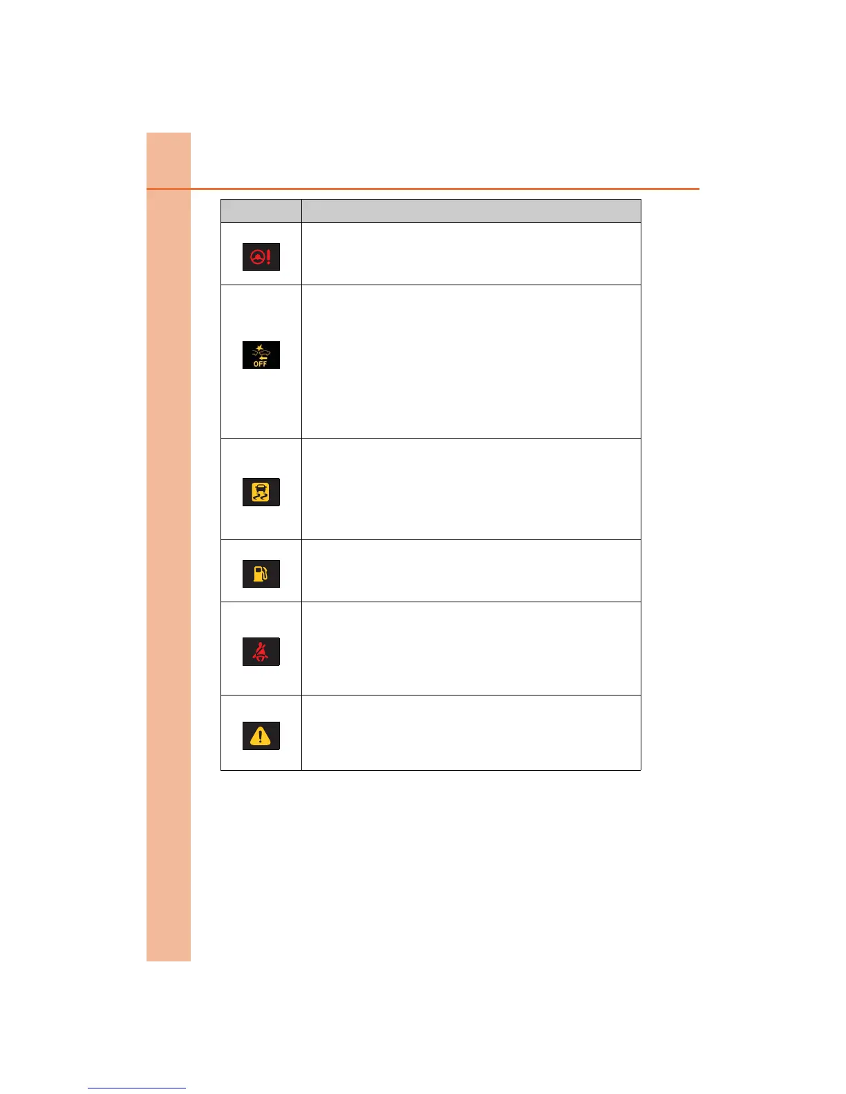 The warning light will operate as follows, even when the system is