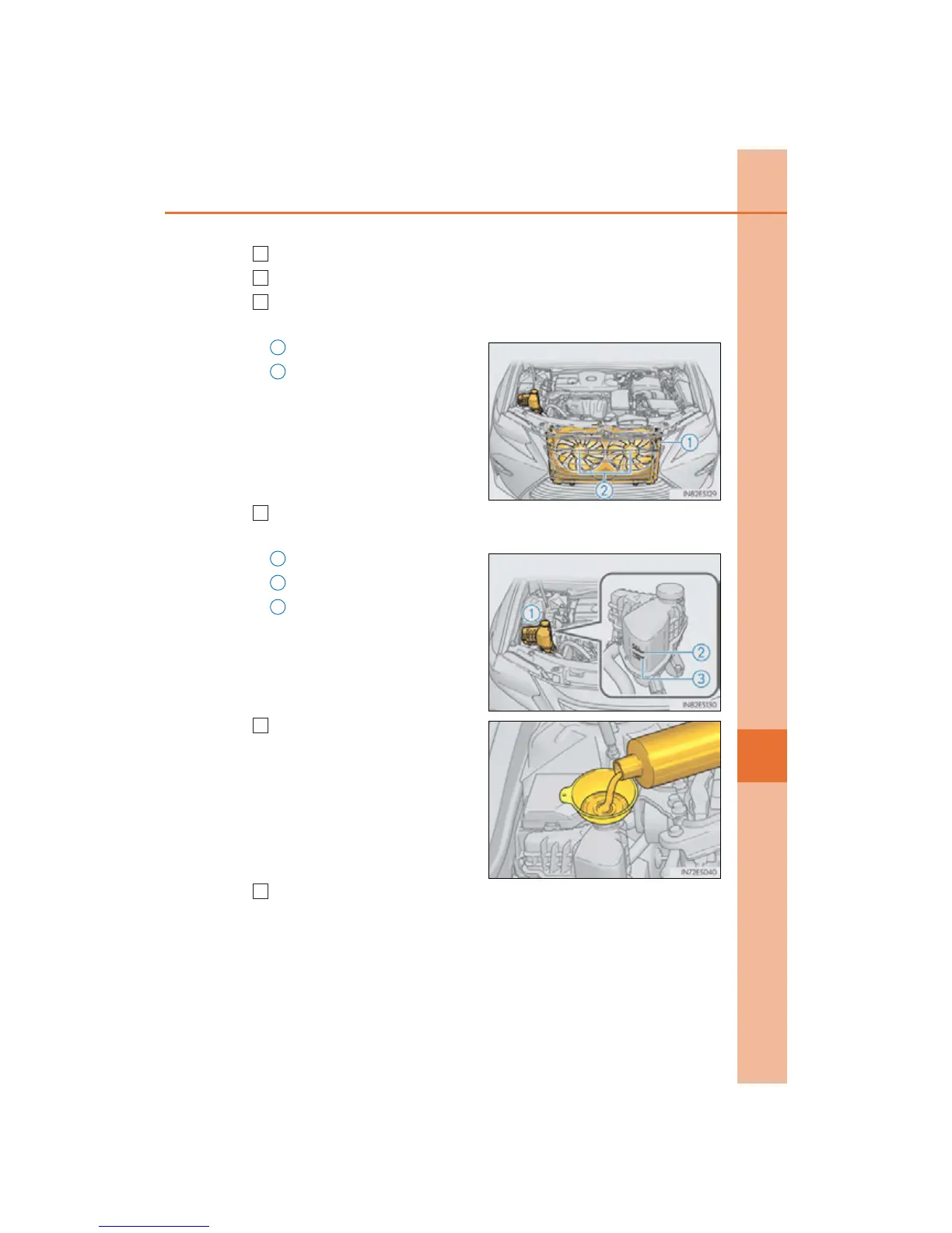 After the hybrid system has cooled down, inspect the hoses and radiator