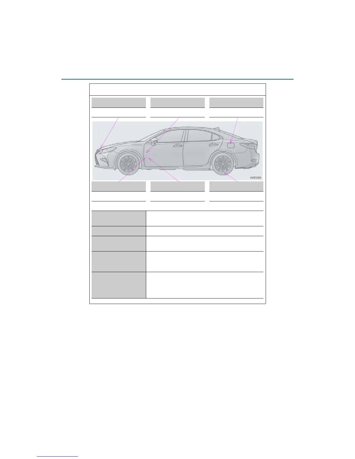 Hood lock release lever Fuel filler door opener Tire inflation pressure