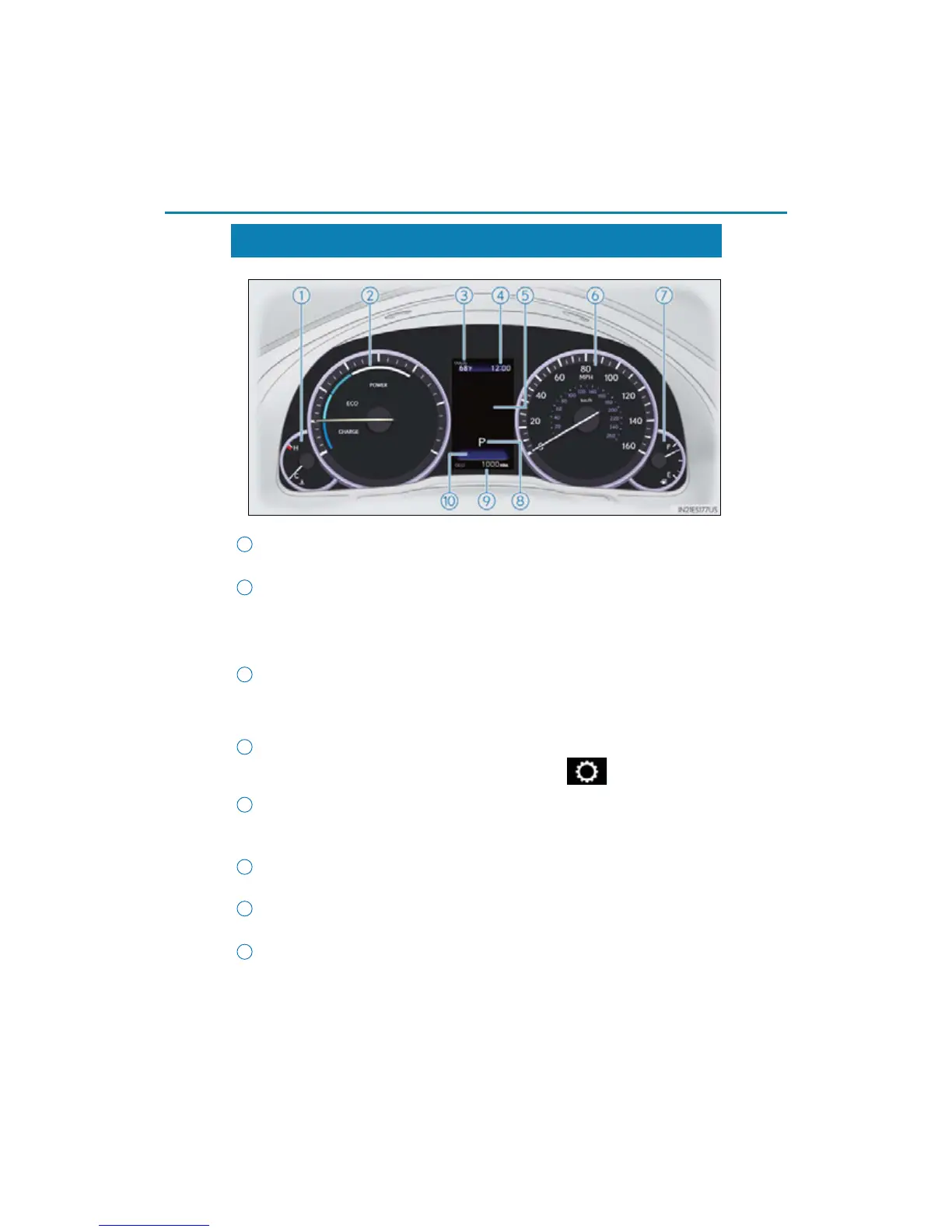 Displays hybrid system output or regeneration level. (P. 88)