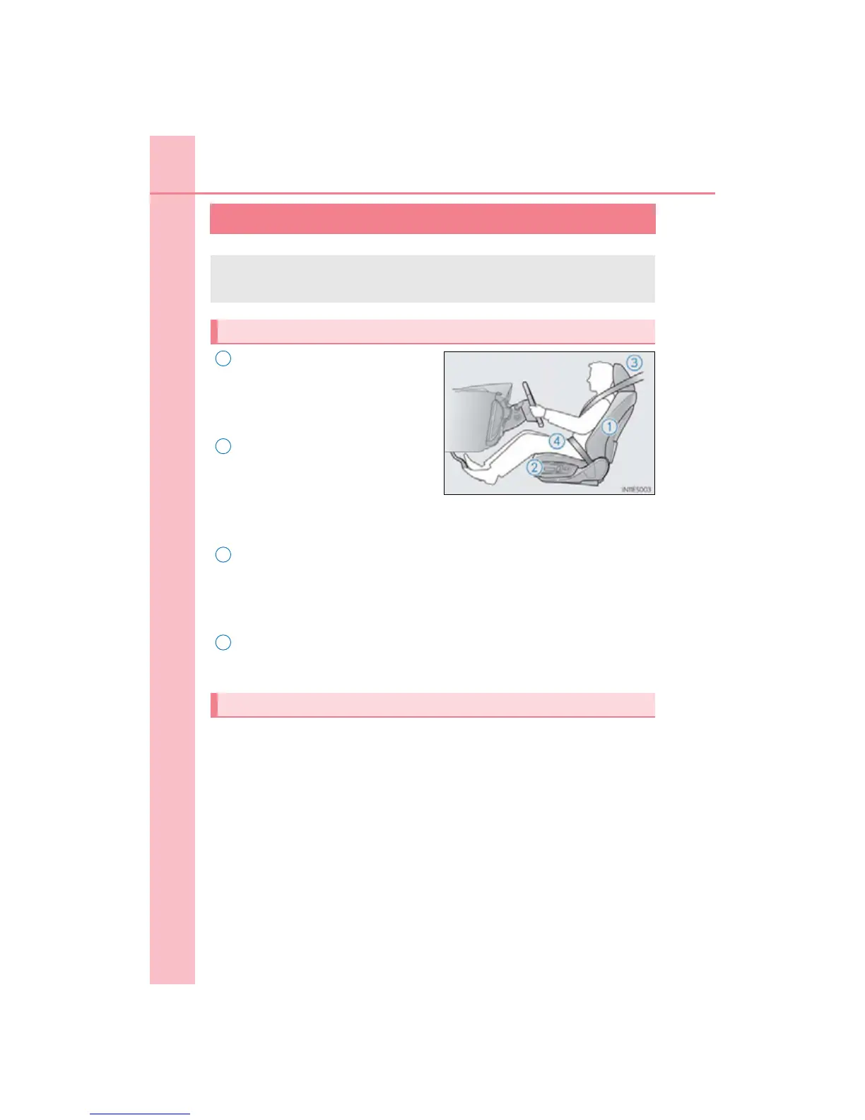 For safe driving, adjust the seat and mirror to an appropriate position