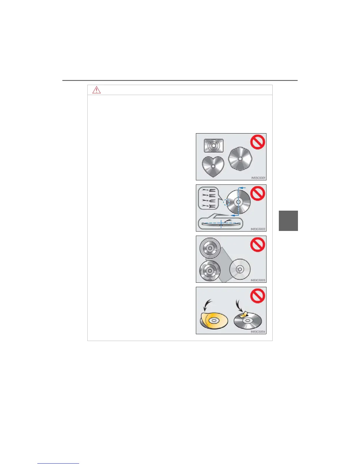 Also, do not use 3 in. (8 cm) CD adapters, DualDiscs or printable discs.