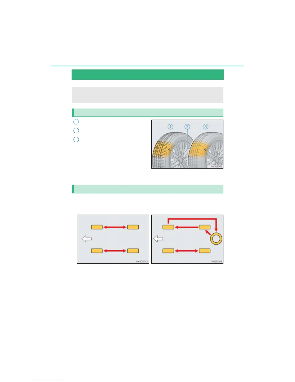 To equalize tire wear and extend tire life, Lexus recommends that tire rotation is