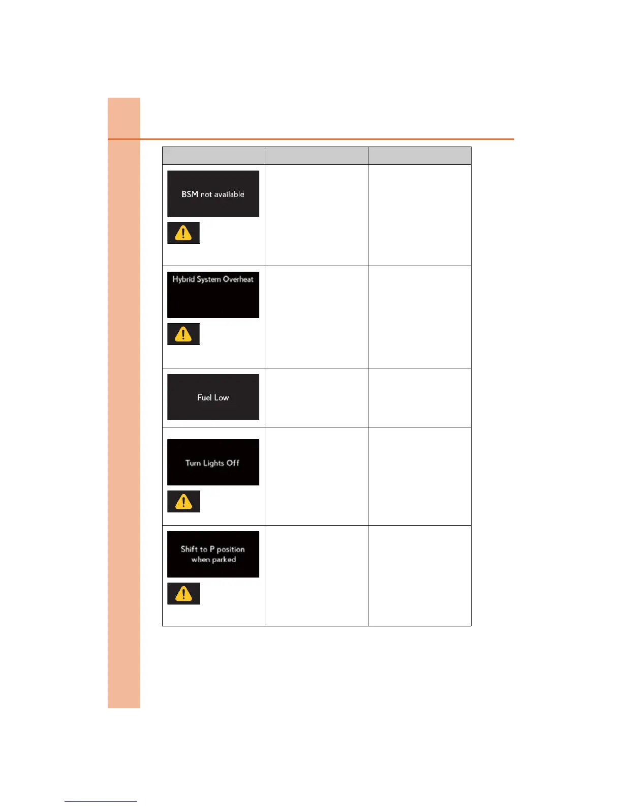 Warning message Details Correction procedure