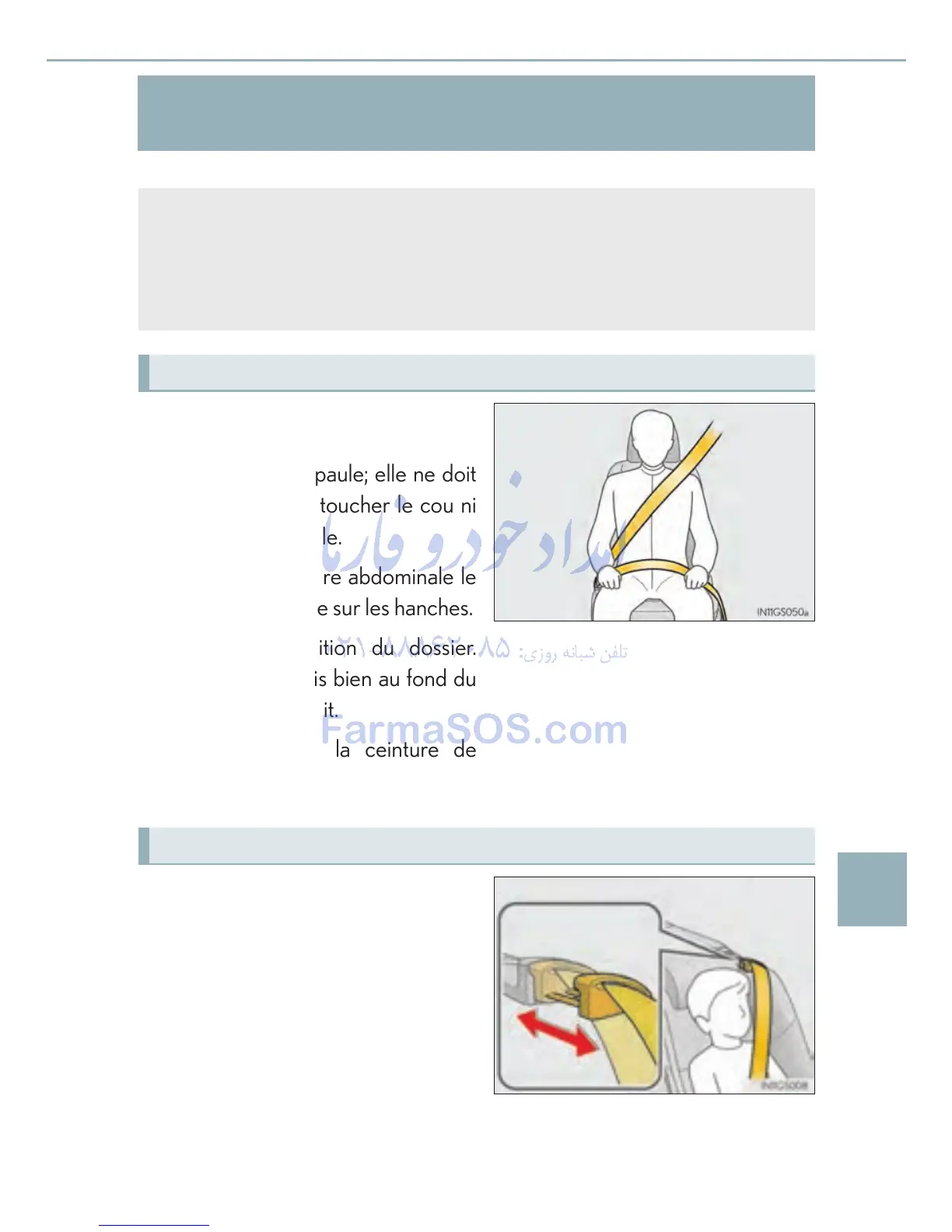 The following is a French explanation of seat belt instructions extracted