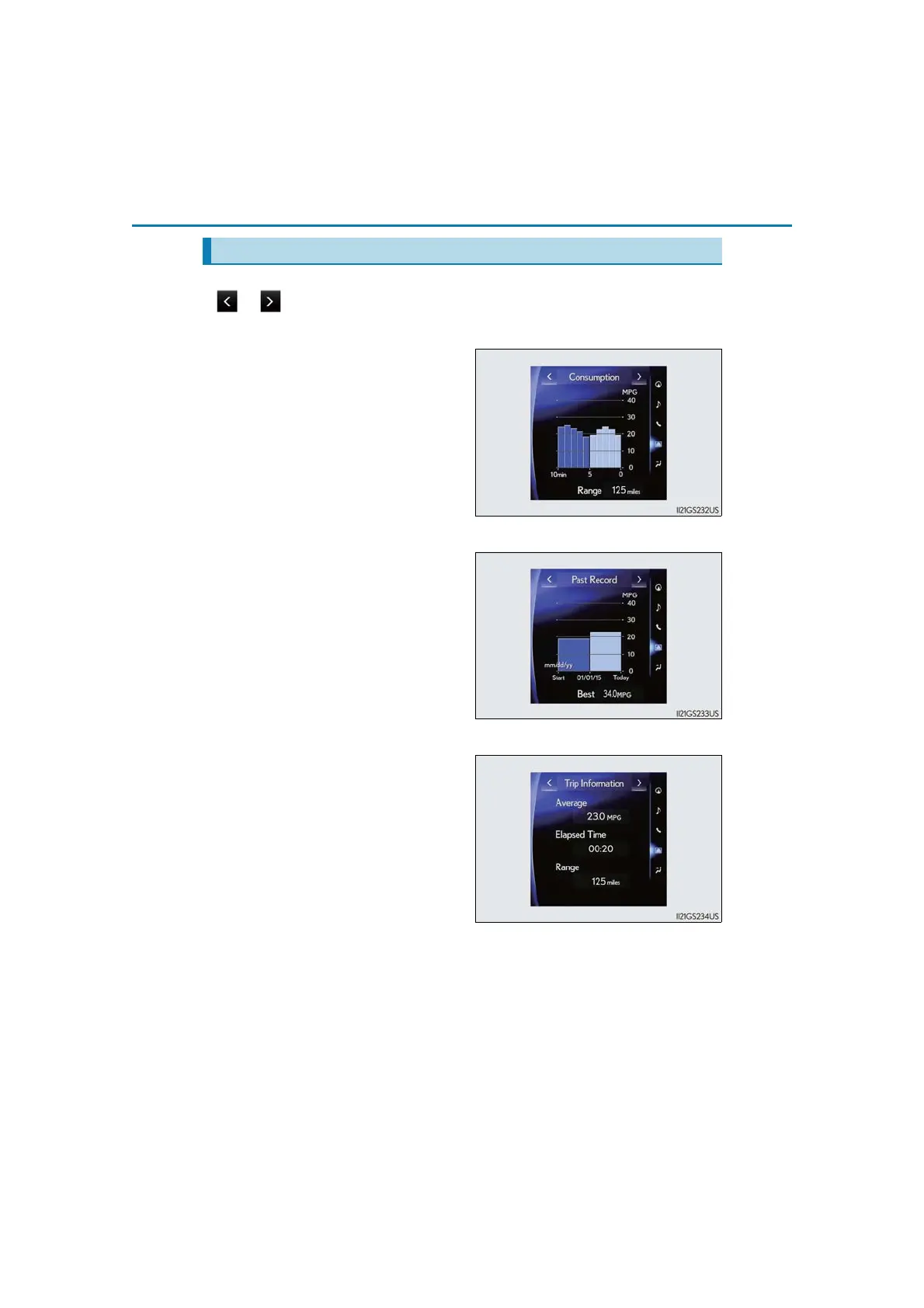 Displays the average fuel consumption