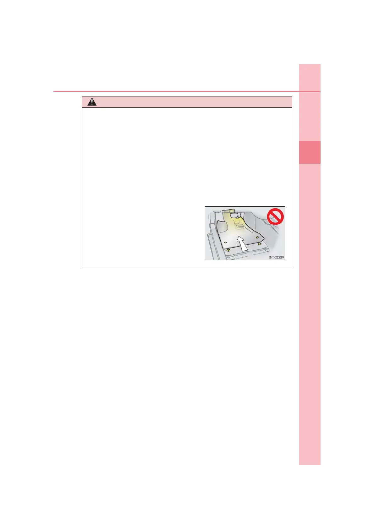 ● Do not use two or more floor mats on top of each other.
