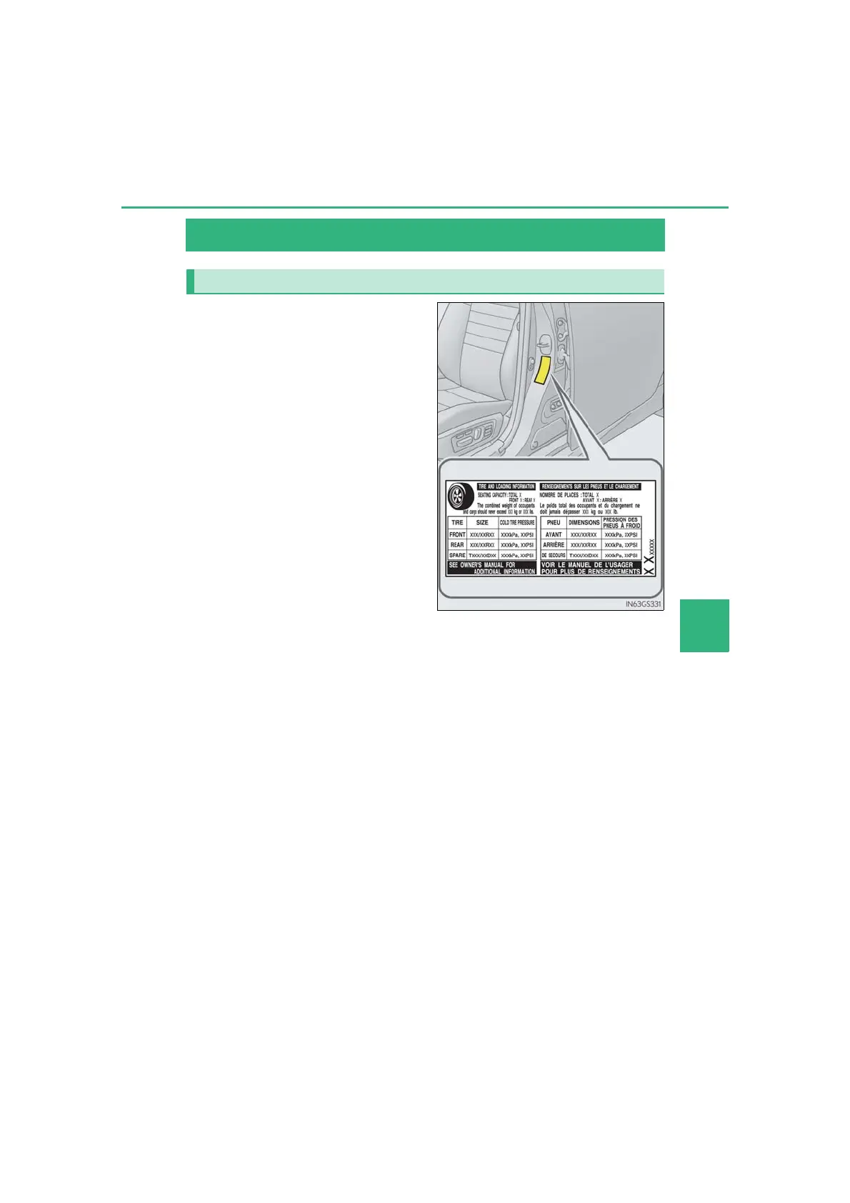 Lexus GS300 - Tire Inflation Pressure