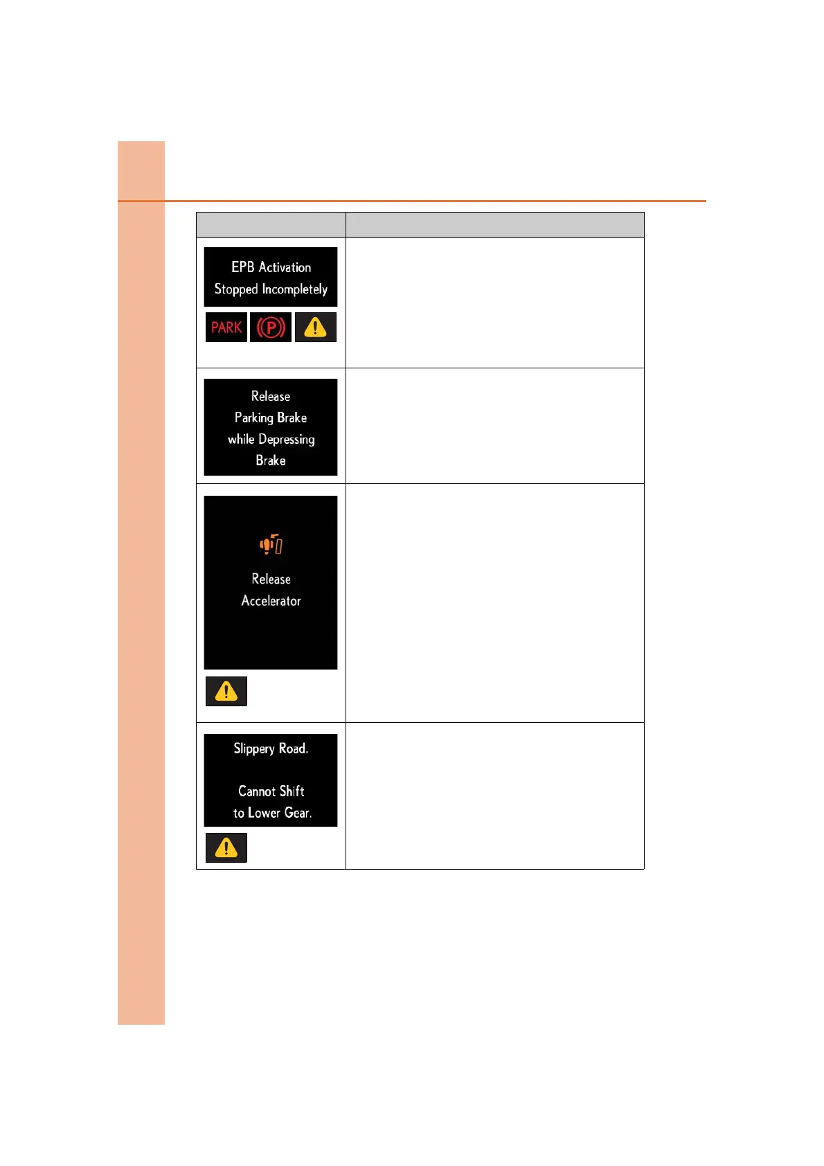 → Release the parking brake while depressing the