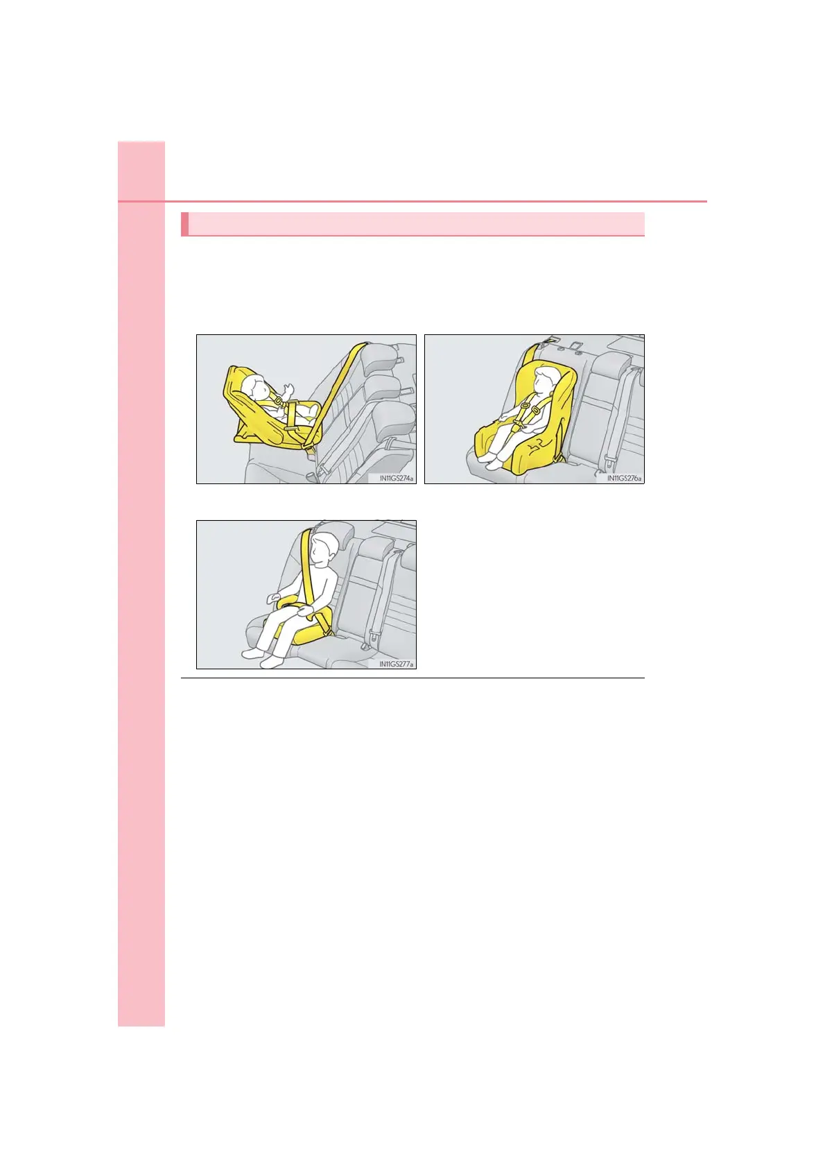 ● If the child is too large for a child restraint system, sit the child on a rear seat and use the