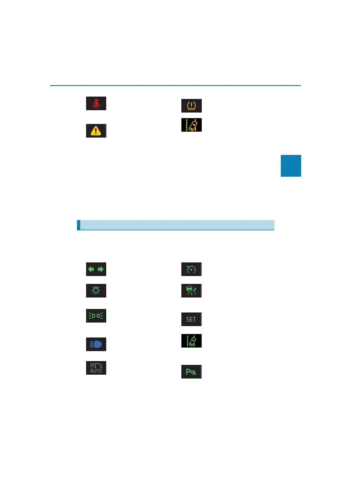 The indicators inform the driver of the operating state of the vehicle’s various sys-