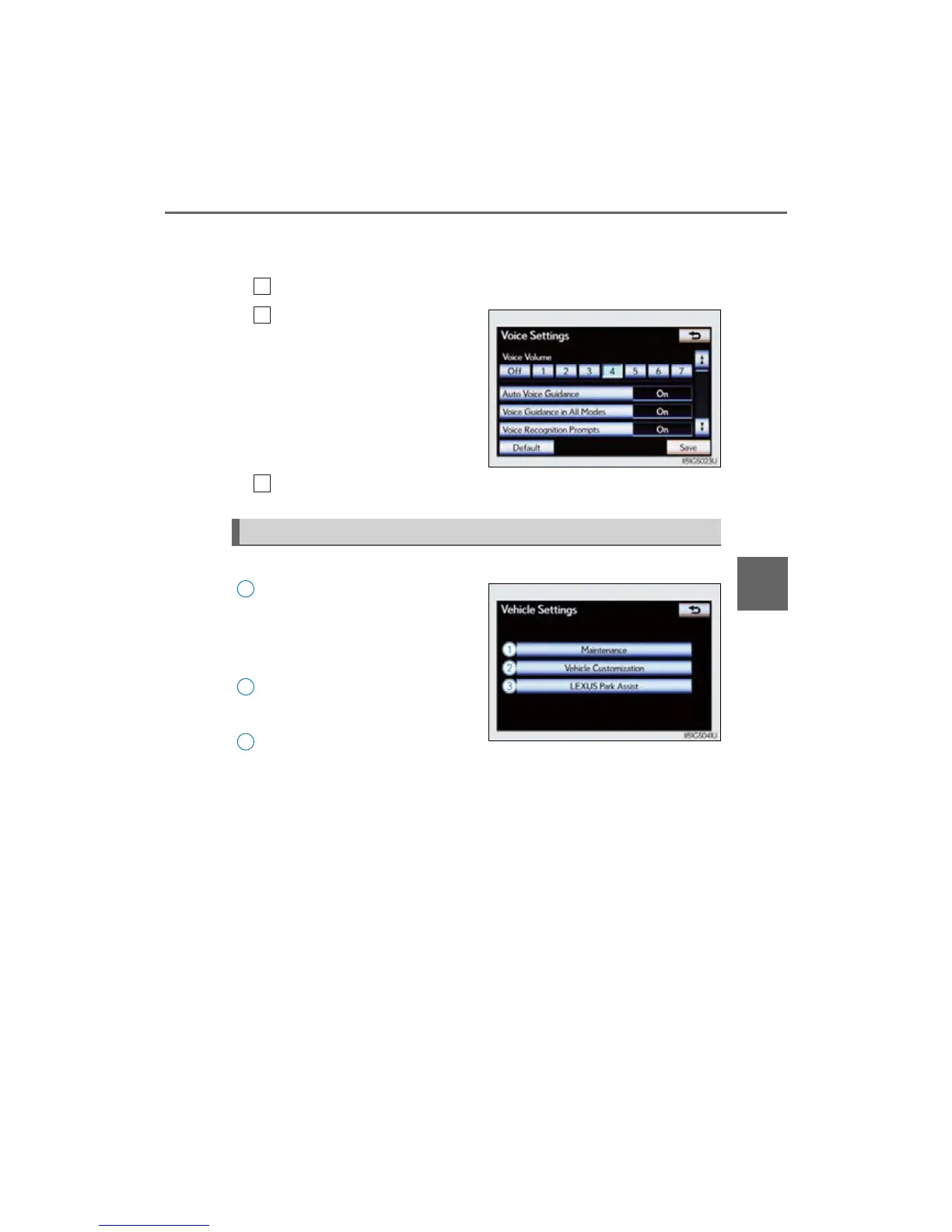 Select “Vehicle” on the “Setup” screen.