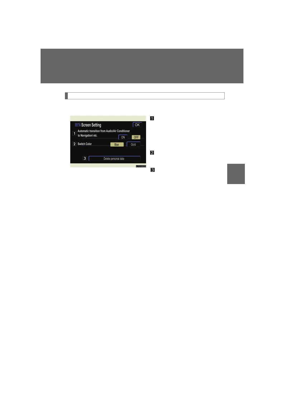 The following screen settings can be changed.