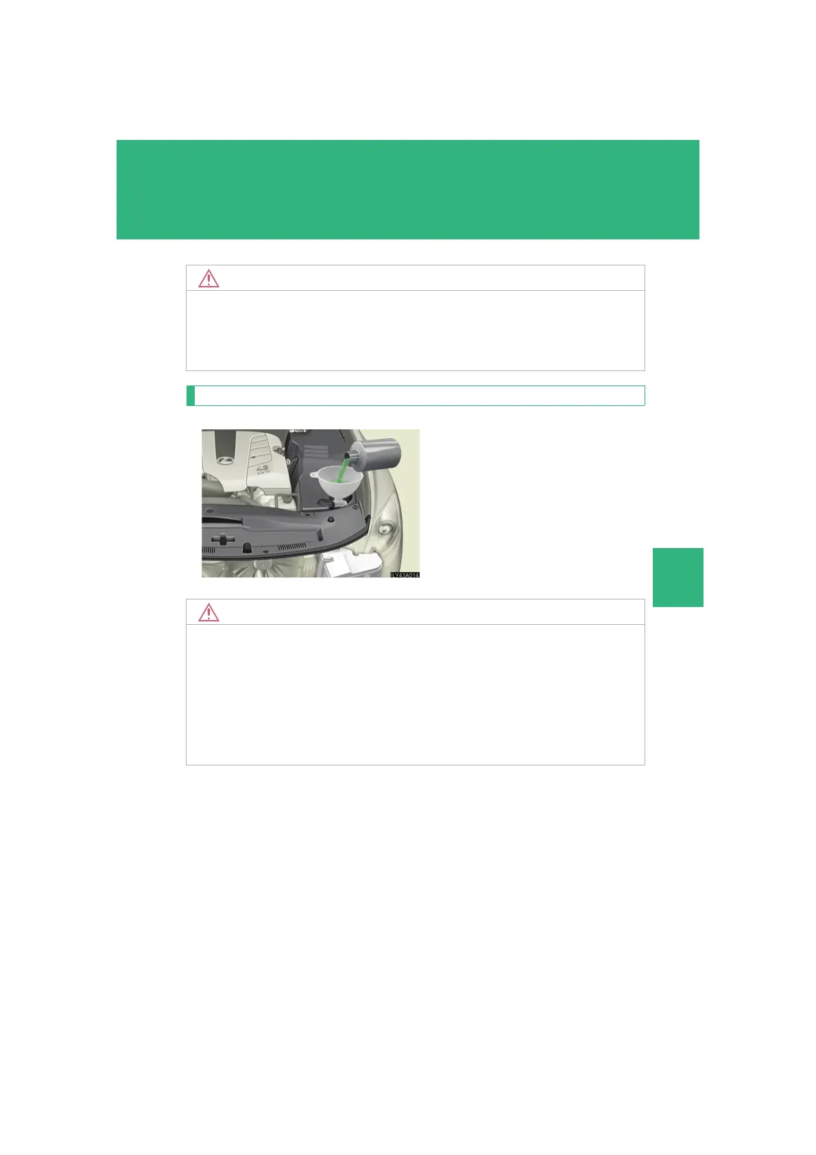 Do not use soapy water or engine antifreeze instead of washer fluid.