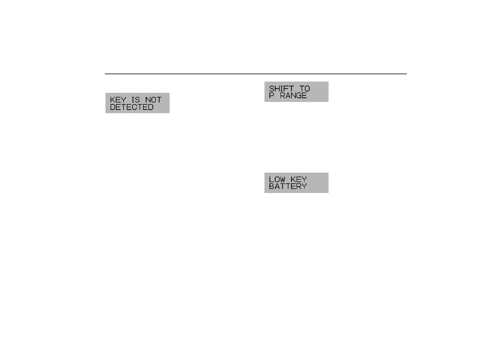 position other than “P”, “SHIFT TO P RANGE” and “KEY IS