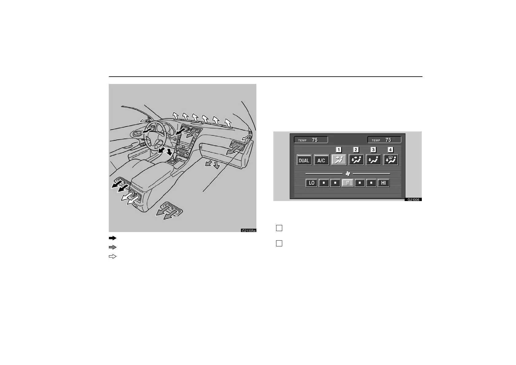 Bi−level—Air flows from the floor vents, the instrument