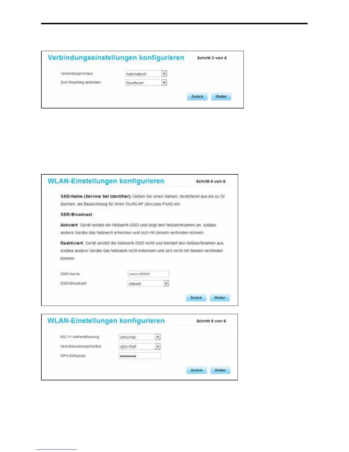 ! Hinweis: Verbindungsmodus