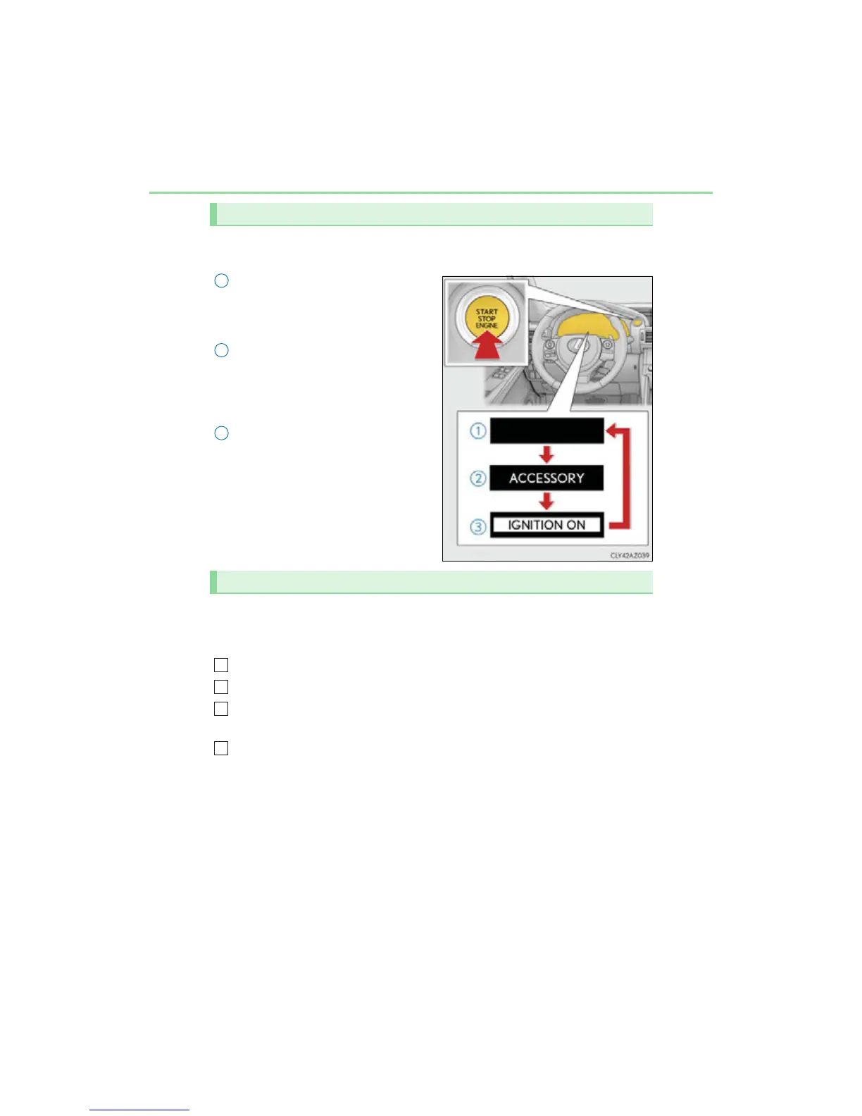 Modes can be changed by pressing the engine switch with brake pedal released.