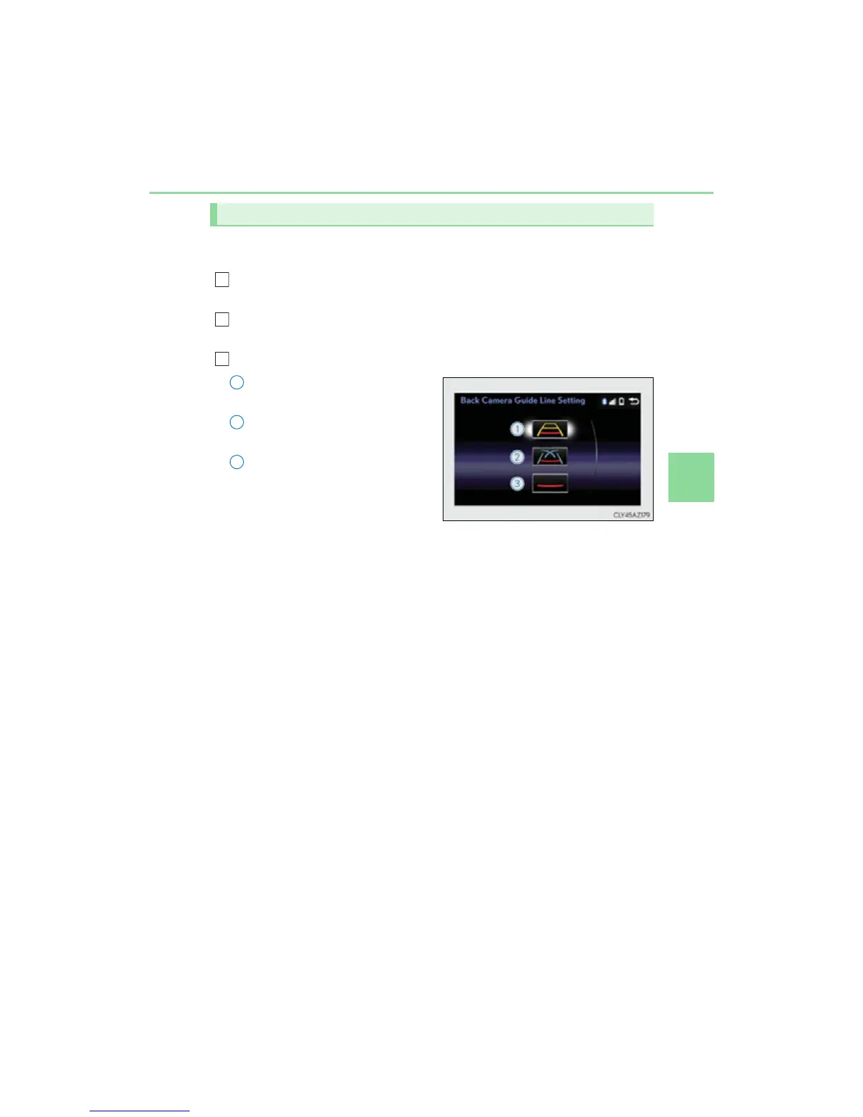 Select “Vehicle”, and then select “Back Camera Guide Line Setting” on the