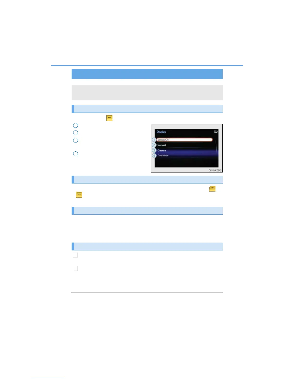 Select “General” or “Camera” on the “Display” screen or select “Display” on