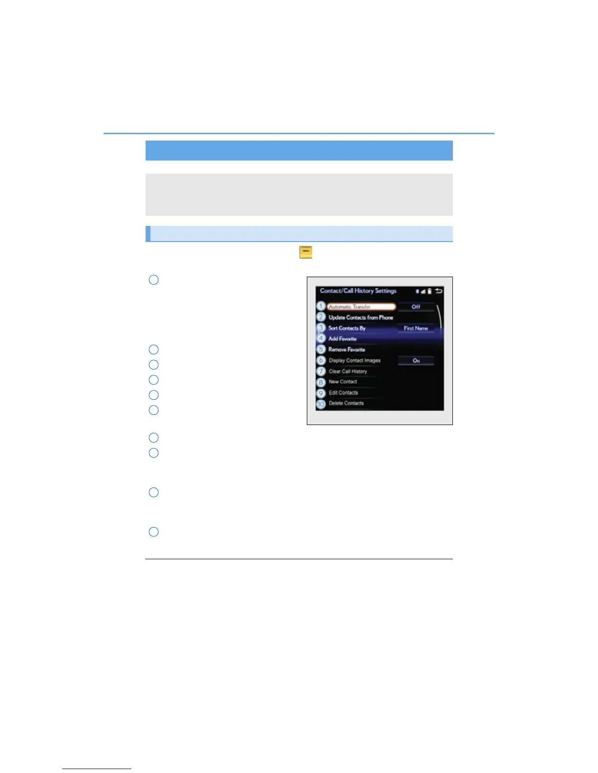 Go to “Contact/Call History Settings”: “Setup” “Phone” “Contact/