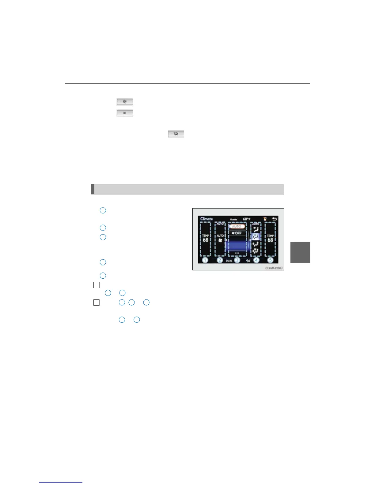 Select to set auto mode on/off, fan