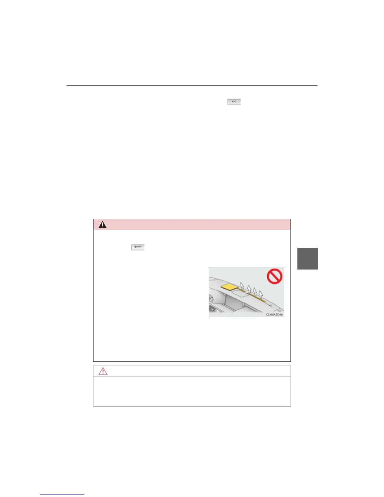 • It is recommended that the air conditioning system be set to outside air mode prior