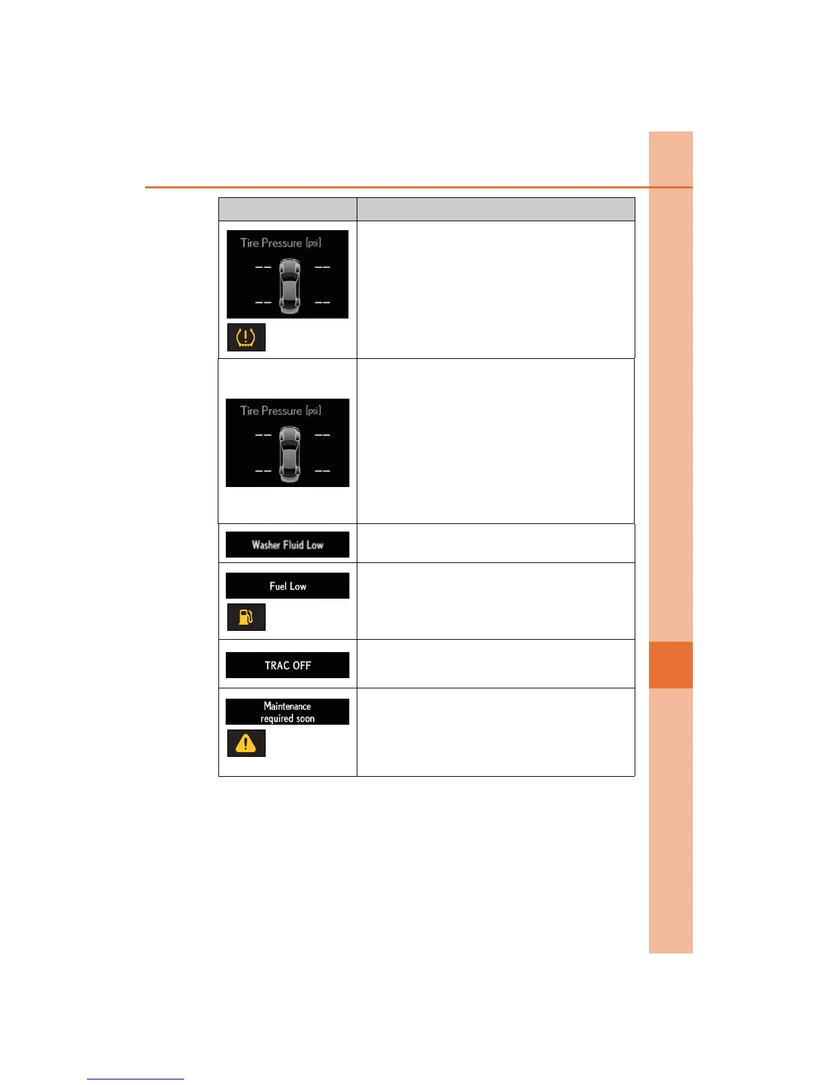 Indicates a malfunction in the tire pressure warning sys-