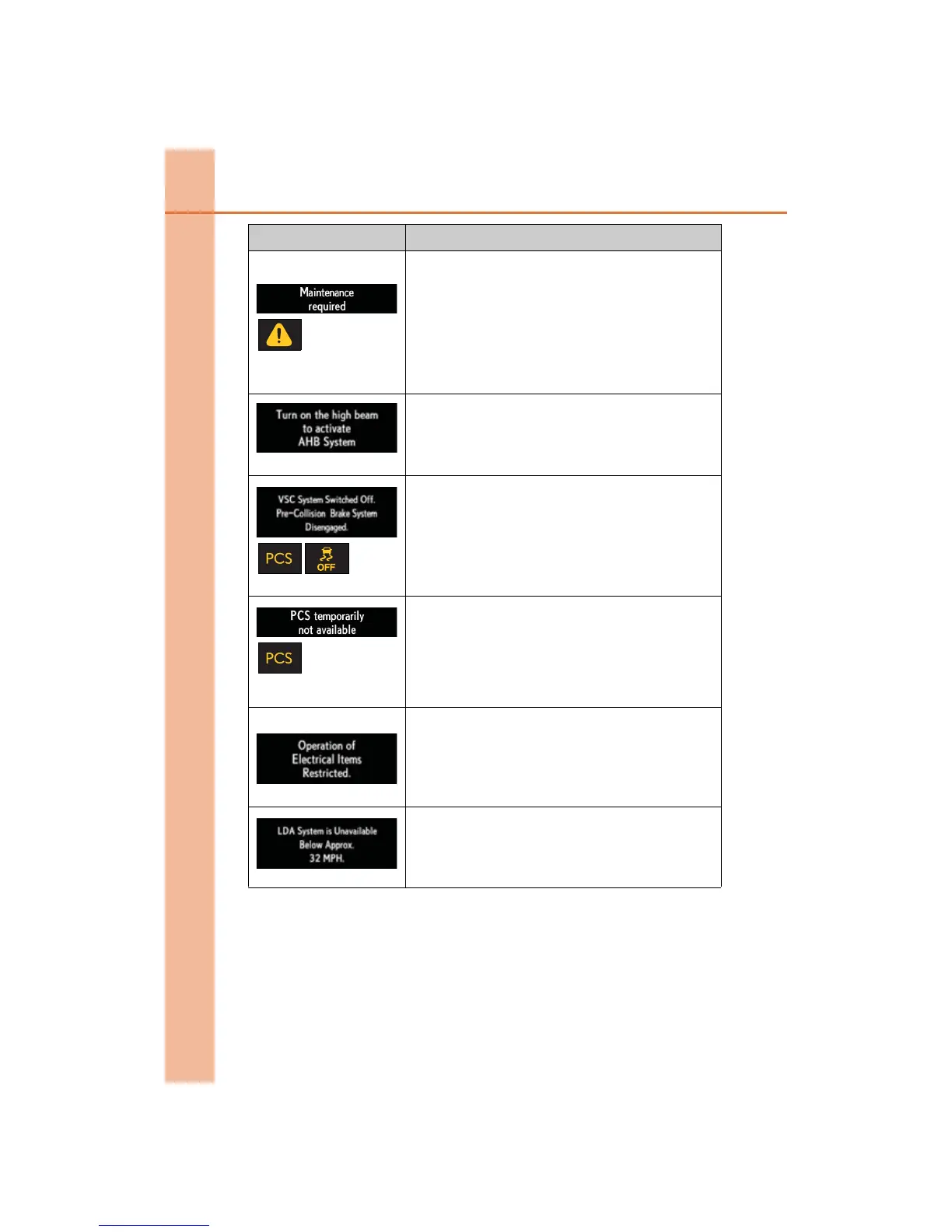 Indicates that the PCS (Pre-Collision System) is not cur-