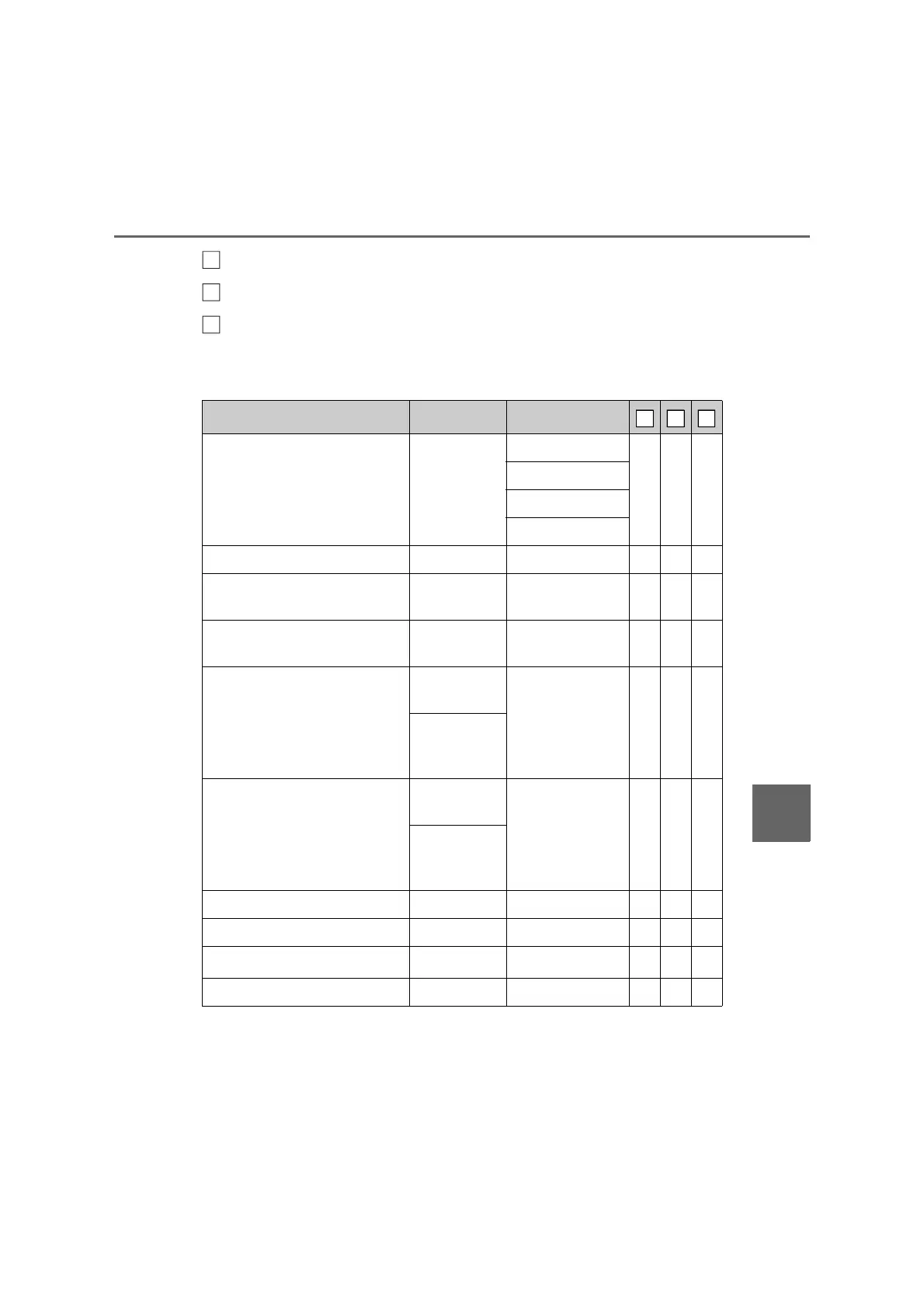 Definition of symbols: O = Available, = Not available