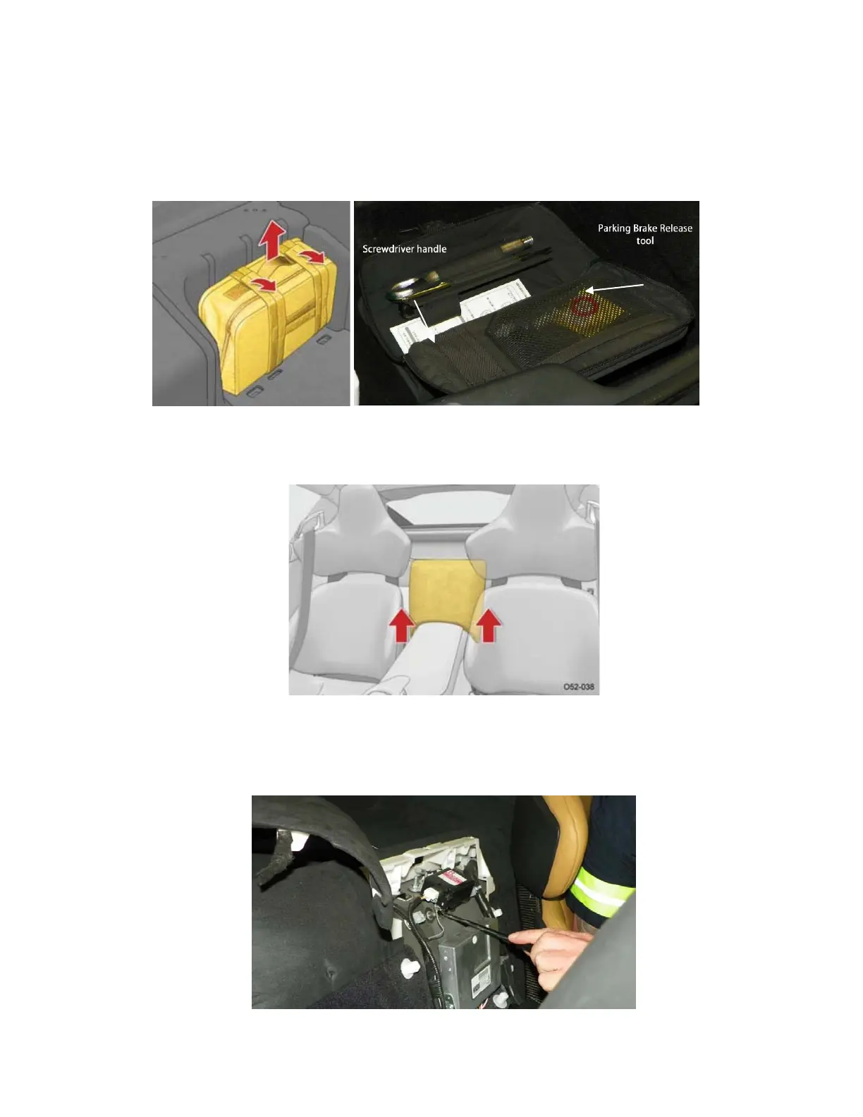 • Open the trunk and remove the parking brake release tool and screwdriver handle
