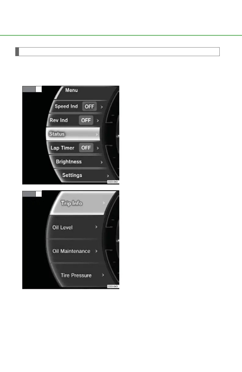 “Trip Info”, “Oil Level”, “Oil Maintenance” and “Tire Pressure” information