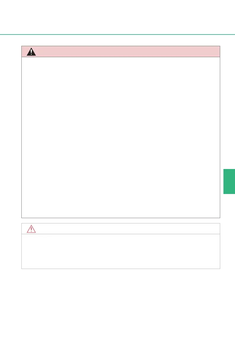 ● Be careful not to touch the engine, exhaust manifold, etc. right after driving as
