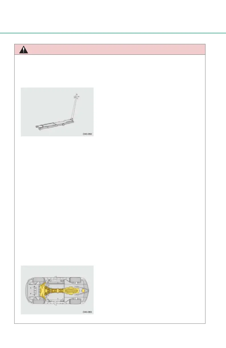 ● When raising the vehicle, do not place any objects on top of or underneath the