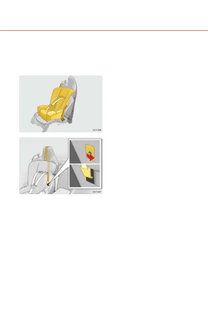 child restraints to the seats using the seat belt. Attach the top tether strap