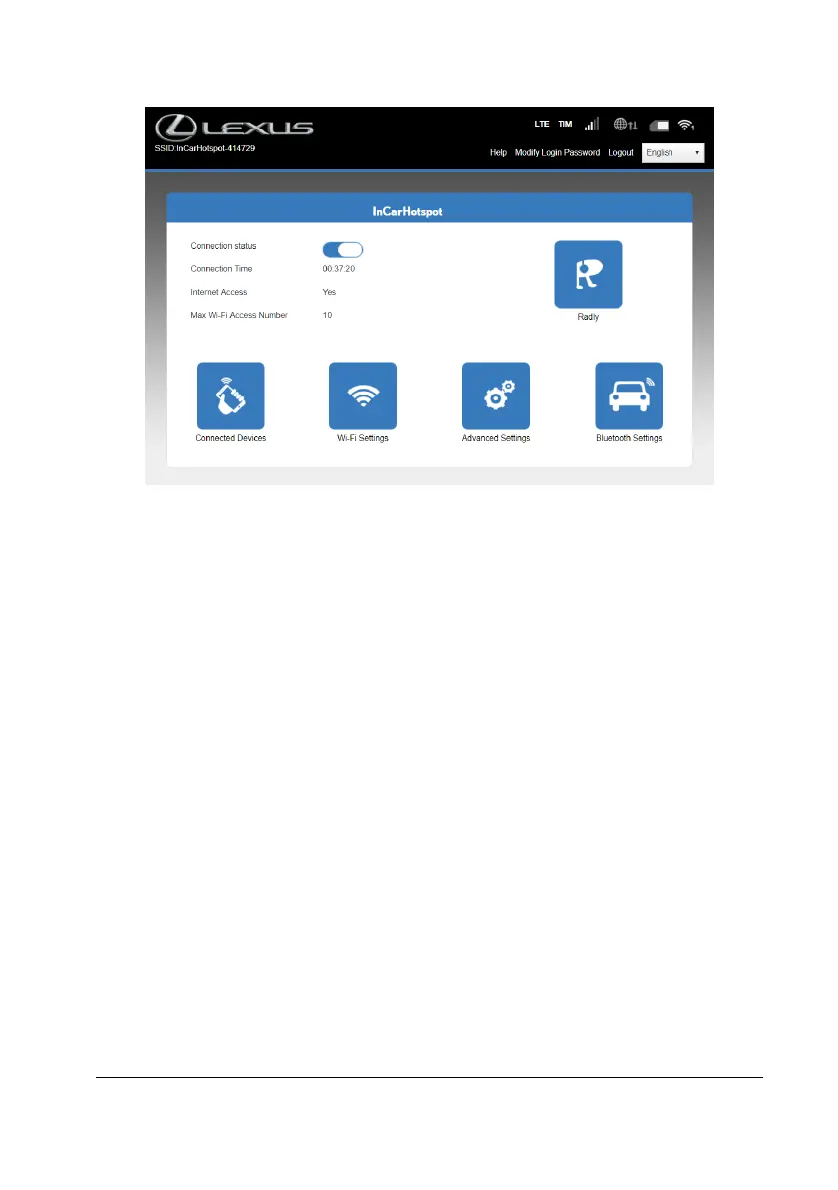 Rysunek 2: Strona ustawień głównych Lexus Link 4G box