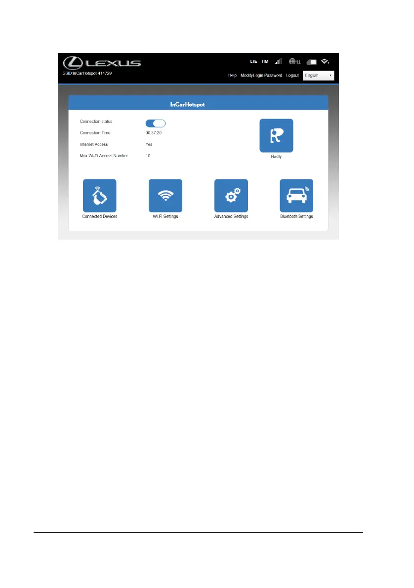 Зображення 2. Сторінка основних налаштувань Lexus Link 4G box