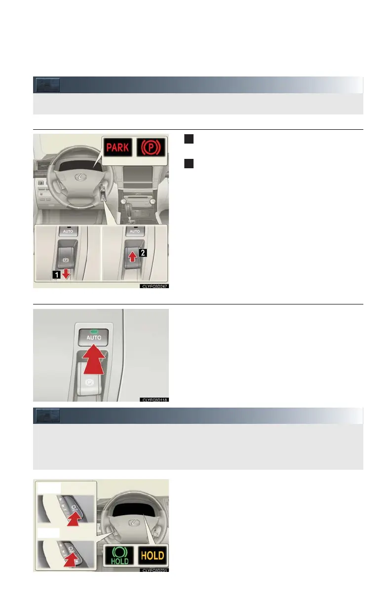 The brake hold system keeps the brake applied when the shift lever is in “D”, “N”, or “S”