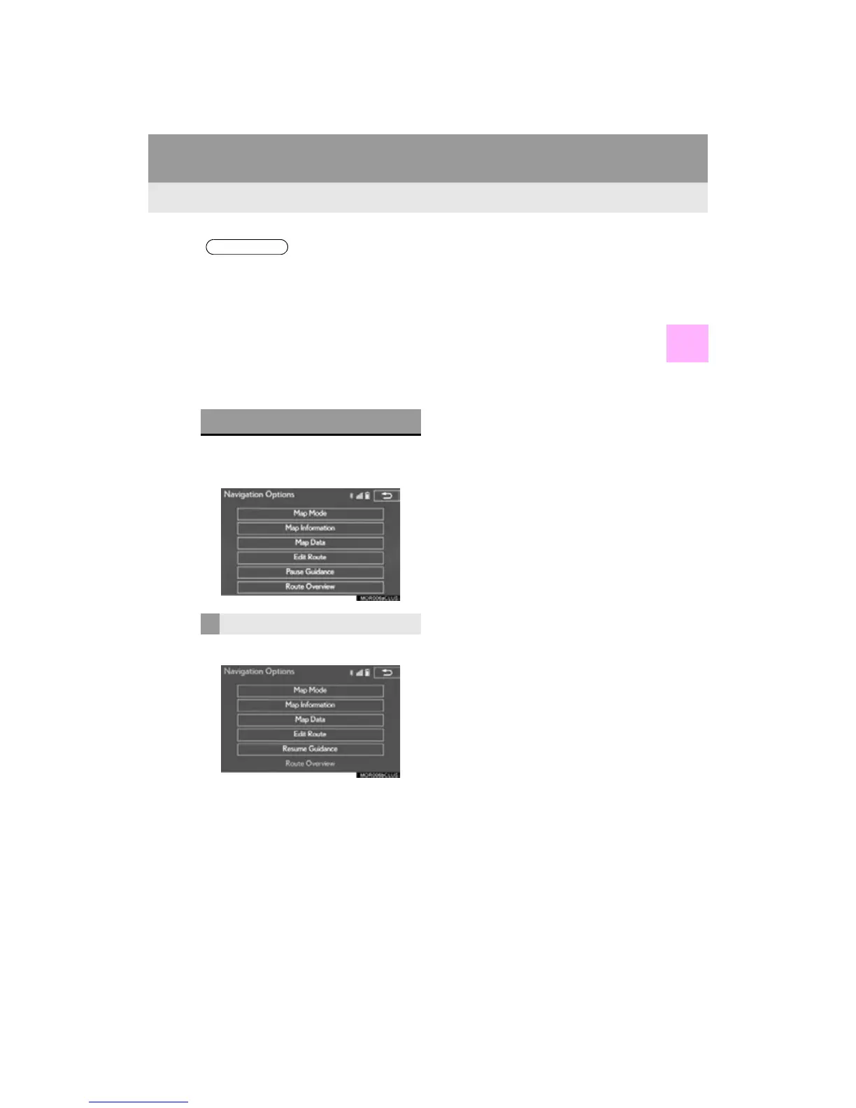 1 Select “Options” on the map screen.