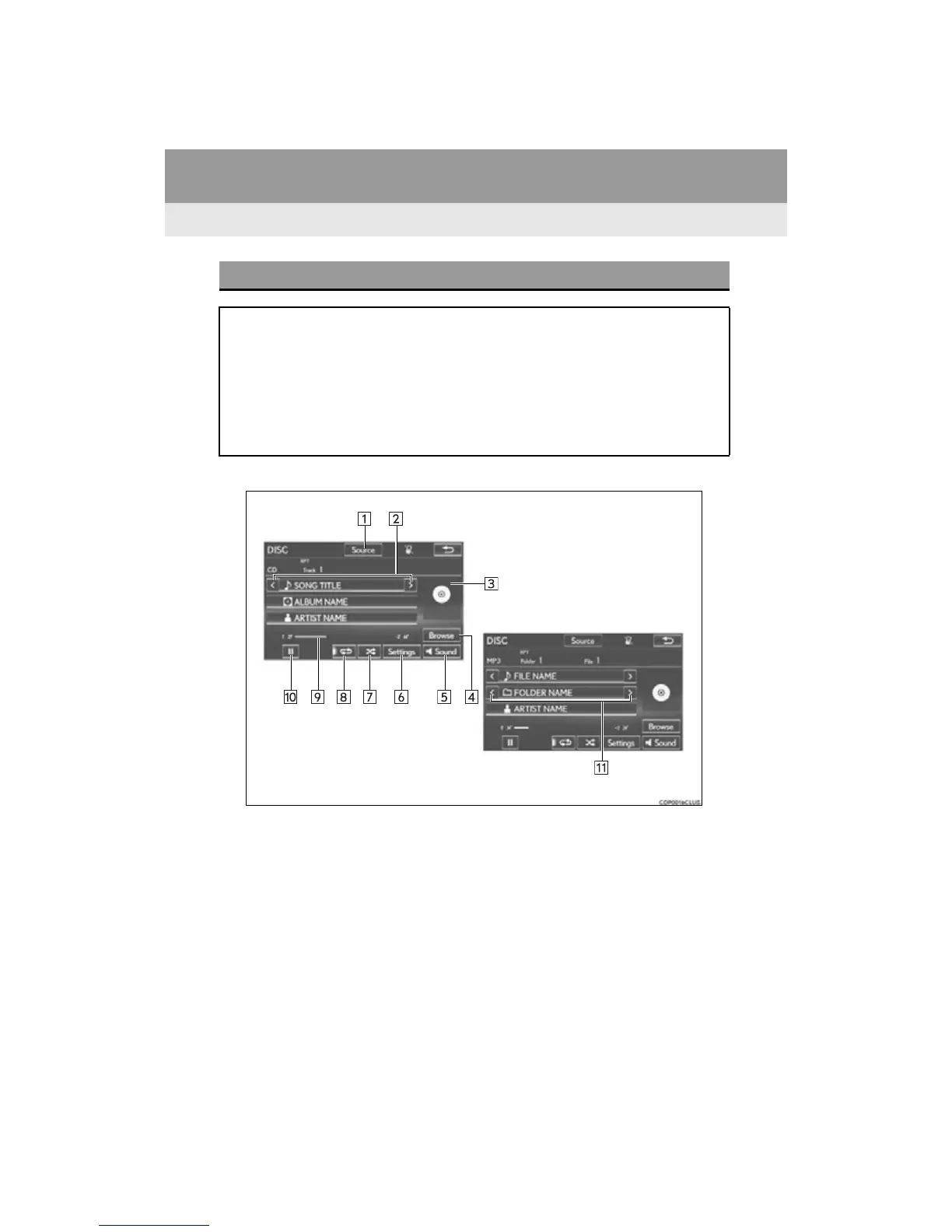Press the “MEDIA button to display the audio control screen.