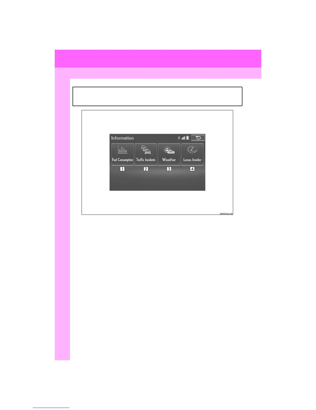 This screen can be used to display traffic information, fuel consumption, etc. Press the