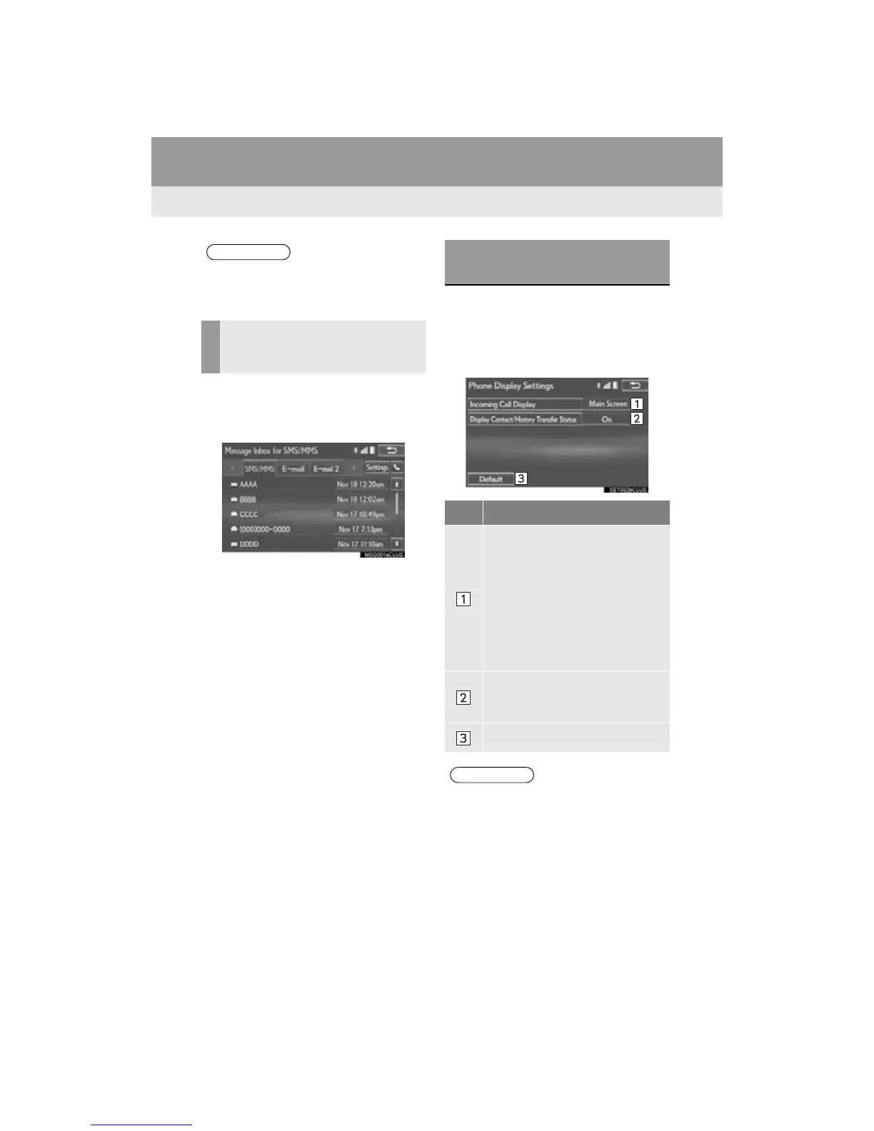 1 Display the “Phone/Message Settings”